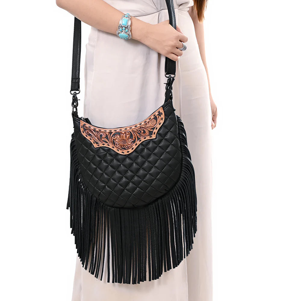 Black Crossbody Hand Tooled Genuine Western Leather Women American Darling ADBG1682