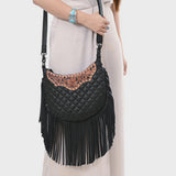 Decorated with beautiful Genuine leather fringes giving it a western look.