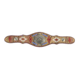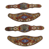 This Boot Lasso has all the design elements of the quintessential Aztec aesthetic. Concho pride of place in the center and embroidered motifs to frame the concho. The backs of the lassos have a Native American embroidered design that overlays the 100% premium leather that has a printed Aztec design.