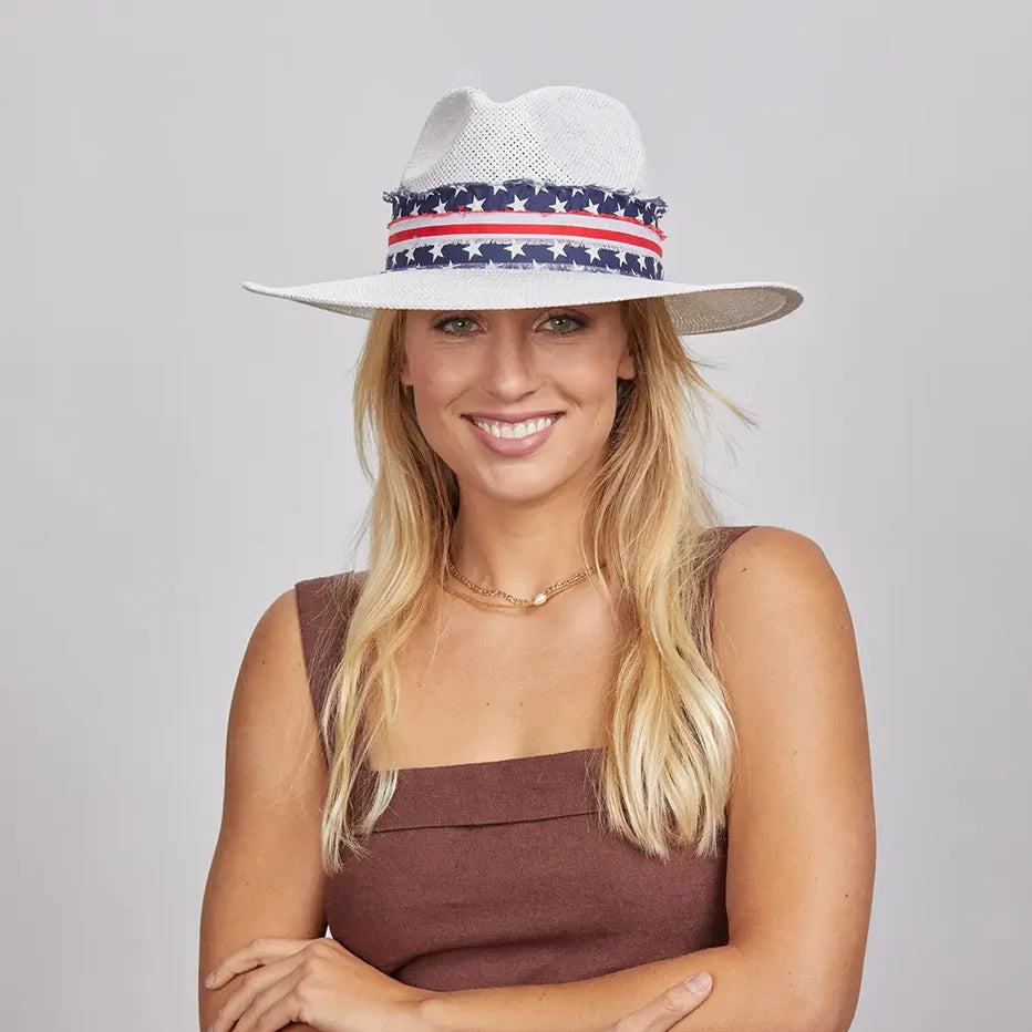 A true patriots hat, this wonderful white hat has a bold hatband that looks like the American flag. Take the American spirit with you wherever you go with the Knox straw sun hat. Featuring a sewn-in sweatband with a unique hidden pull strap tightening system for a one of a kind fit! Plus we’ll include two adhesive size reducers for an even more custom experience.