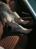 C3955 - WOMEN'S OVERLAY EMBROIDERY LAMB FRINGE WHITE SNIP TOE COWBOY BOOT