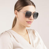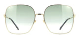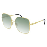 This gold full-rim square metal sunglass with green gradient lenses is enhanced by the addition of the iconic Horsebit motif, paying homage to the House's equestrian heritage.
