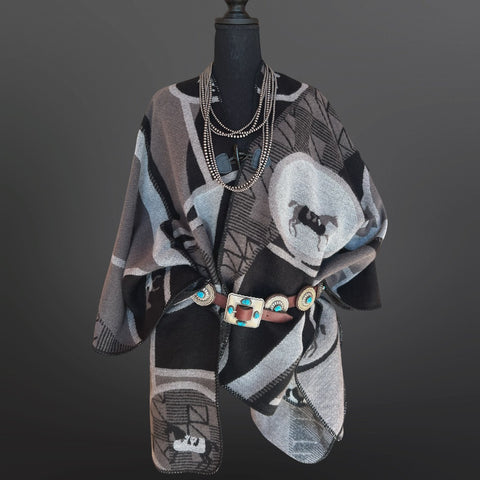 Equestrian Stirrup Poncho in Black and Beige Made in the USA