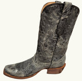 Men's Distressed Leather Cowboy Boots Black Grey Riding Heel Corral Boots A4312