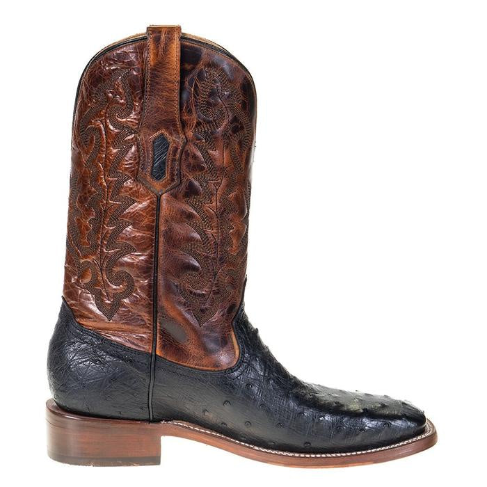 Men's Black and Brown Ostrich Square Toe Corral Boots A4051 SS21
