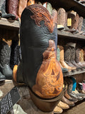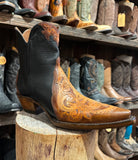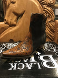 Black Jack Women's Black Brown Short Ankle Boots Hand-tooled Made in the USA LBBHTP 22854 0841