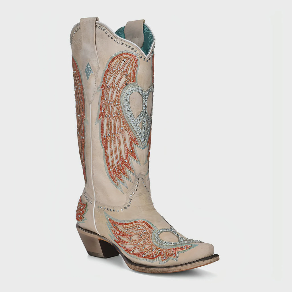 Corral Lady's Bone Heart & Wings Overlay & Embroidery & Studs Boots A4236