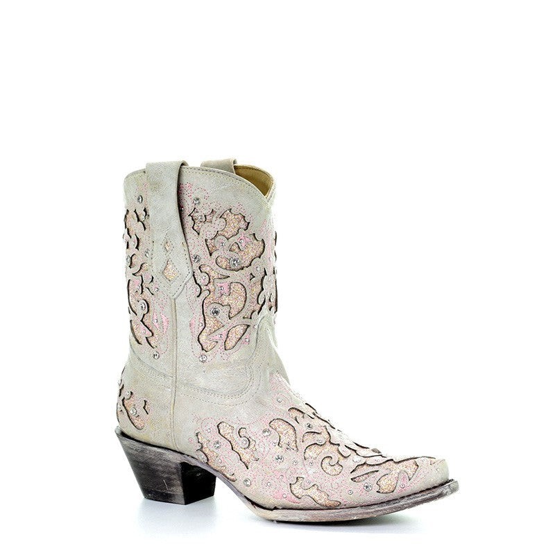 Corral Wedding Collection Women's Mariah White with Pink Glitter Inlay Shorty Boot - A3558