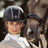 Charles Owen Riding Helmet AYR8 PLUS CUSTOM Leather with Rose color stripe Black Helmet