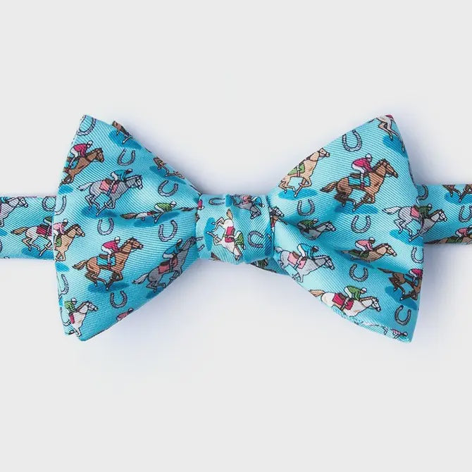 It's derby day! Show off your affinity for all things equestrian in this all silk bow tie. So, saddle up and get ready for a wild ride of compliments. Don't forget to bring your A-game to the racetrack.