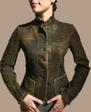 Bergen of Norway Ruffle Leather Jacket in Olive Loden Made in Italy