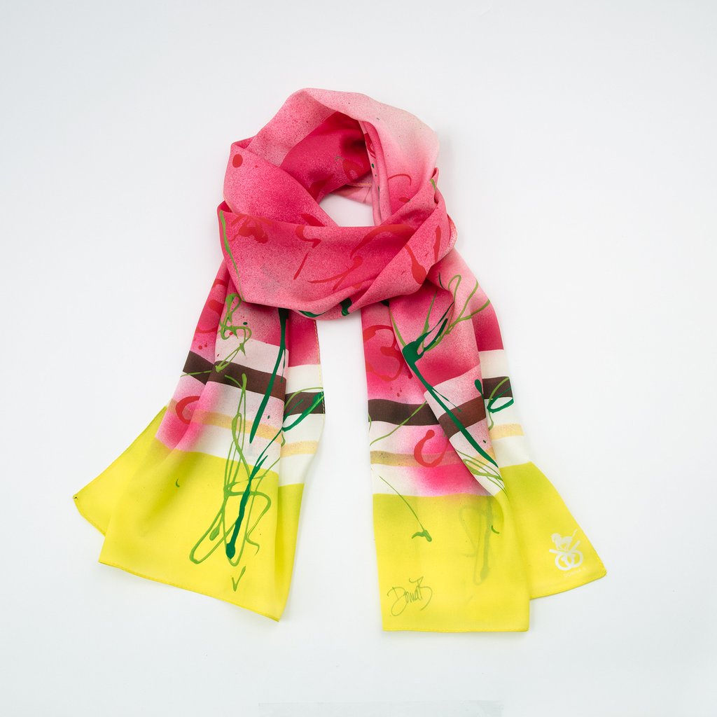 This unique scarf expresses the lovely essence of a summer day, a rose hedge on a fence line, a morning of delight, and inspired by the blanket of red roses placed around the neck of the Kentucky Derby winner each May. Created in 100% lux silk charmeuse, it measures 14" x 60".