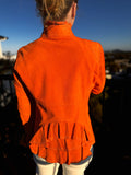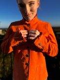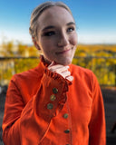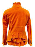 Bergen of Norway Women's Ruffle Leather Jacket in Deep Orange Color