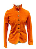 Bergen of Norway Women's Ruffle Leather Jacket in Champagne Orange Color