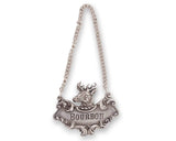 - Impressive solid pewter decanter tags engraved with name of the liquor embossed into the metal