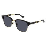 Inspired by the vintage archive, the new Running web concept presents an enameled metal insert placed in the middle of the temple. Clubmaster style shape in acetate and metal. Gucci lettering logo is lasered on the temple. Masculine dark color palette paired with solid lenses.