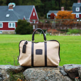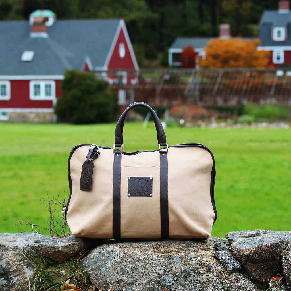 The Harvey Traveler Canvas Overnighter rivals it's cousin, the Leather Overnighter, with a large opening and end to end zip-around design for easy access. Made of durable canvas and top-grain leather trim, with a spacious, upright and efficient design. Compact for easy carry-on. Generous space to pack a little more than what's needed for a one-nighter, in case you're in no hurry to get home. Functionally handcrafted and designed, it fits underneath any airline seat.