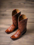 A4552 - MEN'S EMBROIDERY HONEY BROWN CAIMAN NARROW SQUARE TOE COWBOY BOOT