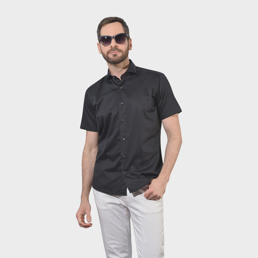 7 Downie Men's Dress Shirt Short Sleve in Solid Black