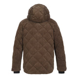 Waterproof corduroy, a detachable hood, quilted down, and a "High West" graphic interior delivers a ski jacket that connects directly with the rustic roots of the classic mountains of the American West. A garment evoking the personality of skiingâs first western sportsmen, the High West Jacket offers warmth, comfort, and style for the gentleman skier seeking first-class quality and on-mountain performance.