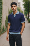7 Downie Men's Johnny Collar Polo in Navy