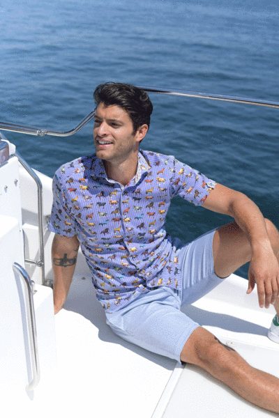 7 Downie Men's Shorts in Light Blue Soft Brushed Cotton with 4-way stretch