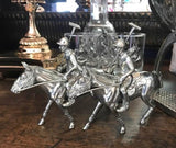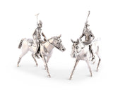 A must-have for any polo player, this Vagabond House salt and pepper set depicts two competitors on horseback in the middle of a match. Each player holds a long-handled mallet in one hand and the reins in the other as they watch the game progress. Crafted in luxury-grade pewter, these figurines feature tremendous detail in the realistic bridles and muscular physique of each horse.