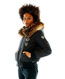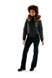 M. Miller Taryn Black Touring Patch Bomber W/ Natural Finn Raccoon