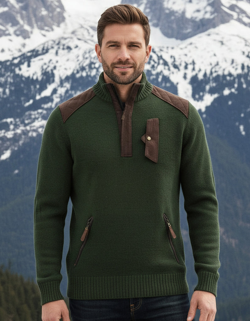 Men's ALPINE Guide Sweater High West in Hunter Green Olive | Alps & Meters 100035