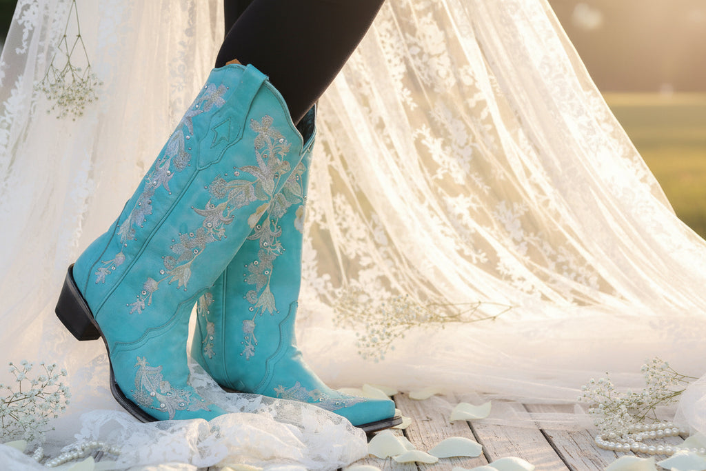 Corral Flowered Embroidery Boots | Crystals & Studs | Turquoise