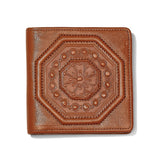 Vegetable-tanned, embossed fine leather showcases octagon-shaped medallions centered with a rose window motif inspired by the ceilings of European cathedrals.