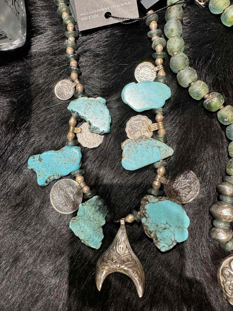 Designer Jewlry by Mya Lambrecht Necklace Turquoise Silver Coins