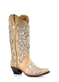 Corral Women's Tan Glitter Inlay Floral Embroidery Boots A3670