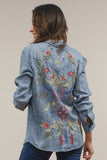 Kyla Women's Blue Denim Shirt Colorful Embroidered Flowers Dalai