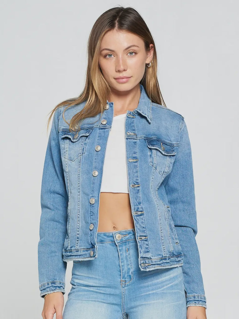 Embrace your style with our Medium Wash Denim Jacket, a product of I&M JEAN, INC., designed in Los Angeles. Crafted with a blend of 98% cotton and 2% spandex, this jacket offers a perfect balance of comfort and flexibility. Our brand, established in 2010, is committed to creating top-quality denim pieces that are carefully fitted to perfection. This jacket embodies our mission to empower you to feel free, beautiful, and your best self in our denim. Experience the perfect combination of sleek sophistication and playful trendiness with our Medium Wash Denim Jacket.
