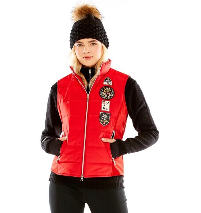 Women's Touring Insulated Ski Vest in Red with Vintage Patch FW22 ON SALE M. Miller
