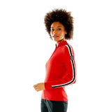 M. Miller Women's Racer Stripe Merino Wool Half Zip in Red