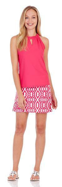 A spring and summer favorite, the Jude Connally Claire sleeveless modified halter top features flirty keyholes at the front and back neckline. Pair with your favorite short for day and a skinny pant for the evening.