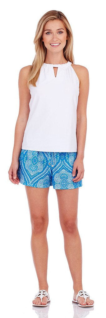 A spring and summer favorite, this sleeveless modified halter top features flirty keyholes at the front and back neckline. Pair with your favorite short for day and a skinny pant for the evening.