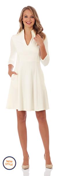 It's no surprise that the Kennedy Dress is a signature piece in the Fall collection. From its beautiful high open neckline to the princess seams & pockets, this style is truly one-of-a-kind. Shown here in our solid ponte.