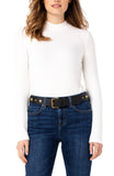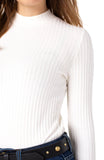 The perfect mock neck long sleeve basic top in a large rib knit. Our Stylists find this knit top super comfortable and easy to wear. Call us at Phone (888) 855-9041 or email sales@SaratogaSaddlery.com