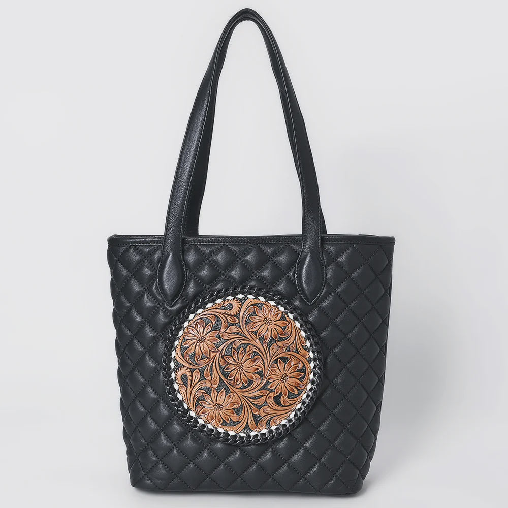 American Darling ADBGA750 Black Tote Hand Tooled Genuine Western Leather Handbag SS25