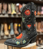 Liberty Black 7129200 in BLACK Red Heart Cowboy Boots