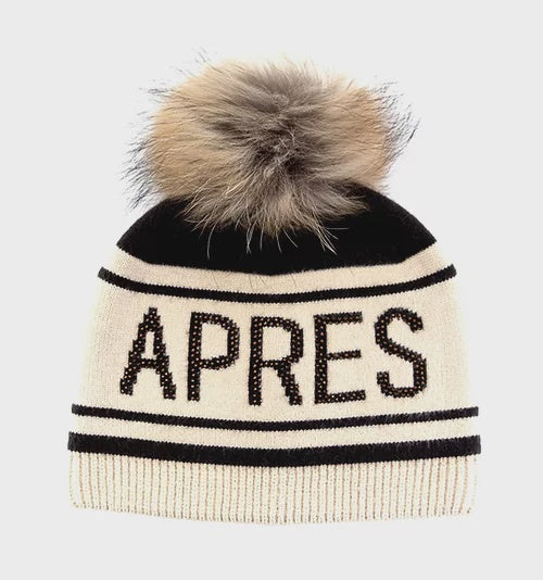 • Mitchie's Beige Apres Ski Knitted Hat w/ Fox Pom HTAN41 FW22 - Saratoga Saddlery & International Boutiques