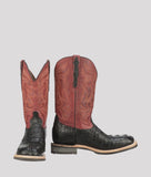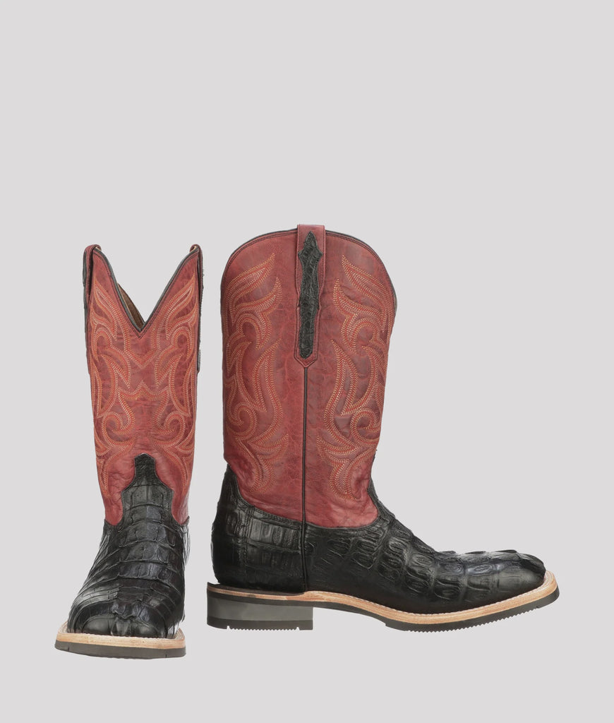 Men's Black Square Toe Cowboy Boots HornBack Caiman Rubber Sole M4558 | Lucchese Rowdy
