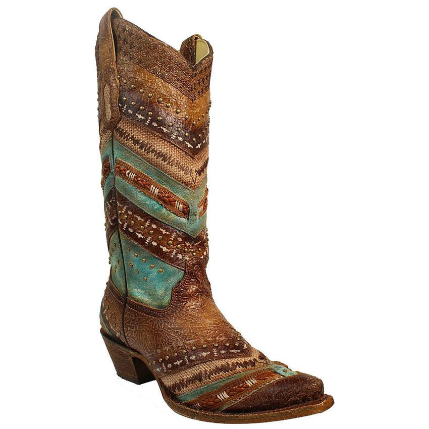 Corral Women's Brown and Turquoise Embroidered Boot A3381