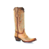 Corral Women's L2003 Straw Embroidery Brown Snip Toe Boots