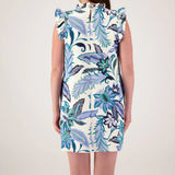 Jude Connally Shari Dress in Falling Floral Blue White Cream SS25 Made in the USA