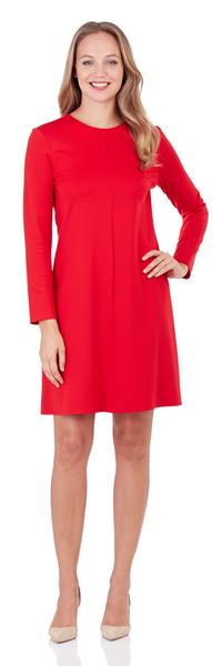 Transition into the fall/winter season in the Karlie dress, a classic modified swing dress. Featured in our solid stretch knit ponte with an a-line shape, this dress is a must for every discerning woman. Jewel neckline and long sleeves. Exposed gold back zip with signature Jude Connally zipper pull.