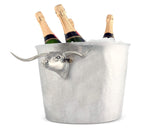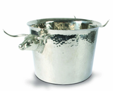 The tub is crafted from hammered stainless steel with a high polish finish. Detailed figural longhorn heads, cast in pure pewter are not only decorative but functional as handles.